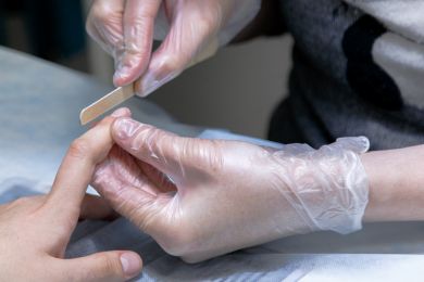 Обрабатывать ногтевую пластину перед нанесением гель-лака для создания ярких и ровных бликов.